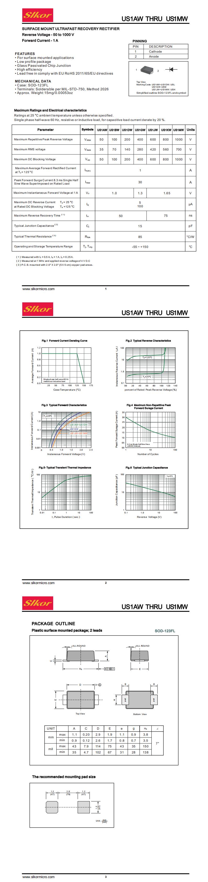 US1DW采用SOD-123FL表面貼裝封裝,適用于緊湊的空間。詳細的安裝和使用說明可參考產品手冊,確保[敏感詞]性能和穩(wěn)定性。