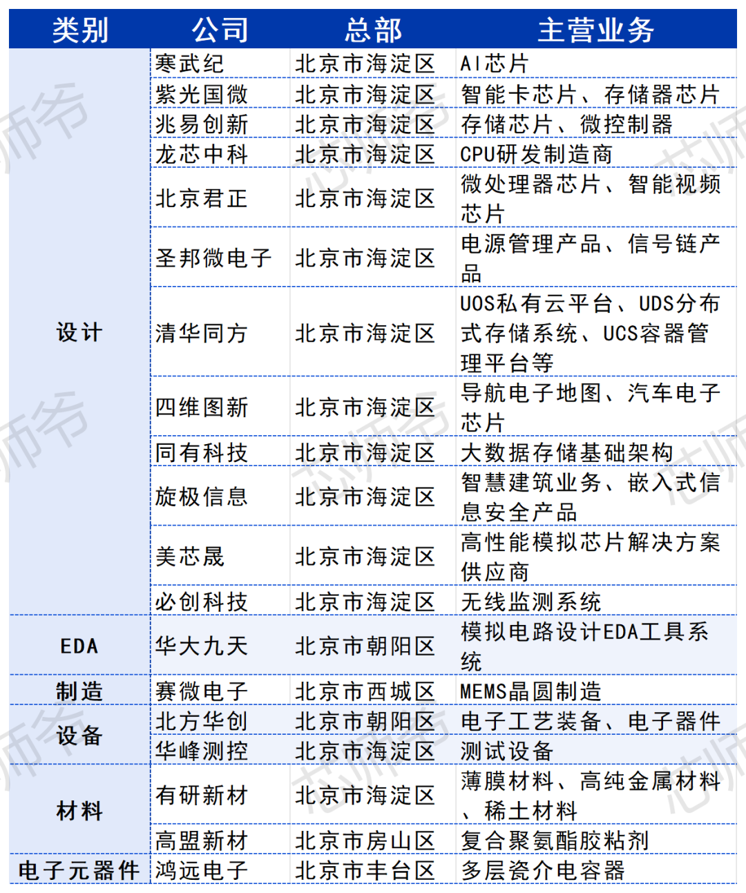 其中海淀區(qū)是中國(guó)知名集成電路生產(chǎn)聚集區(qū),也是中國(guó)知名高校集聚區(qū),因此在這21家企業(yè)中中,有16家誕生于此,幾乎都是芯片設(shè)計(jì)企業(yè)。