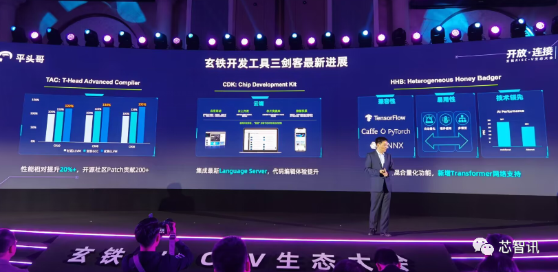 在軟件工具及應(yīng)用層面,平頭哥首次完整推出了基礎(chǔ)軟件三件套——編譯器TAC、編譯環(huán)境CDK、部署工具集HHB,大大提升RISC-V開發(fā)環(huán)境及工具棧效率。