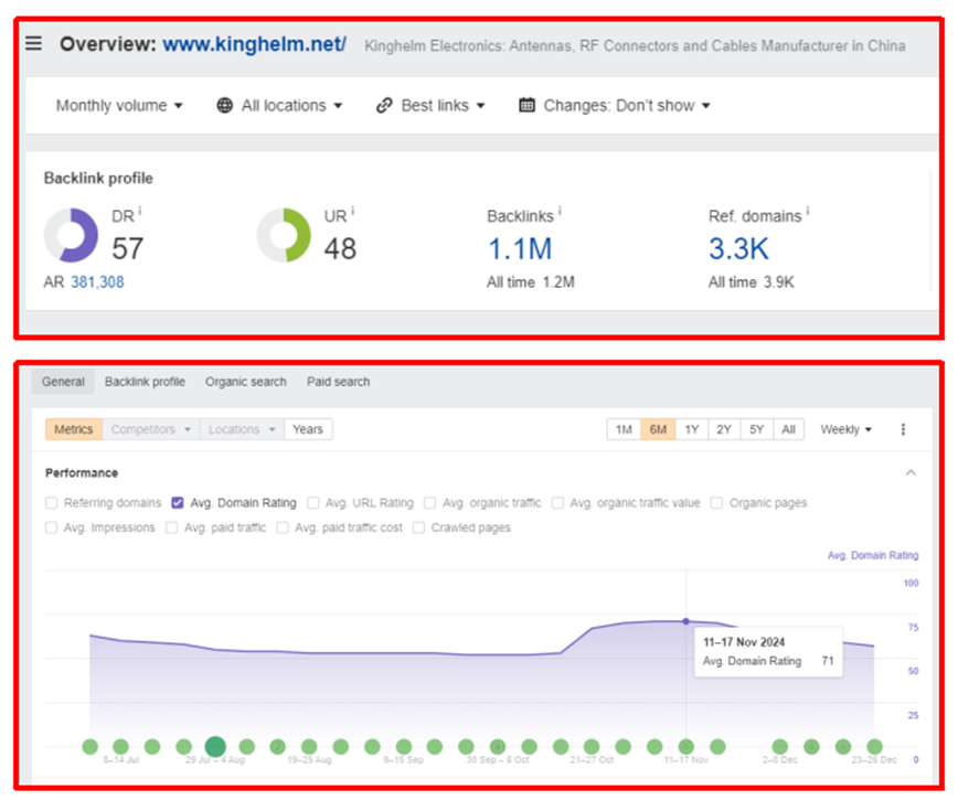 Kinghelm金航標(biāo)谷歌權(quán)重 (Ahrefs DR 值)[敏感詞]時(shí)達(dá)71