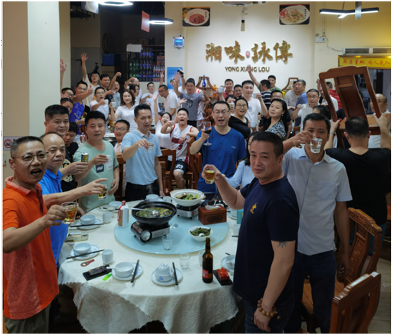 賽場上大家是對手,賽后大家是手足。本著友誼[敏感詞],比賽第二的精神,籃球賽后,朱禮貴董事長請全體參賽運(yùn)動員和啦啦隊(duì)聚餐,情到深處,朱總為大家高歌一曲山東老家的《沂蒙頌》,薩科微總經(jīng)理宋仕強(qiáng)為MVP球員發(fā)放了500元的獎金,本次MVP是勝利方川渝電子籃球隊(duì)的主力組織后衛(wèi)蒙耀成。