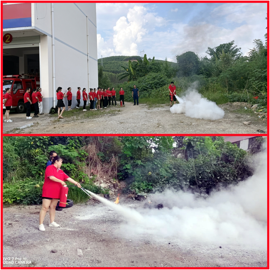 劉歡廠長等人帶頭參與滅火器材使用體驗環(huán)節(jié)
