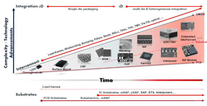 測試主要是對芯片、電路等半導(dǎo)體產(chǎn)品的功能和性能進(jìn)行驗(yàn)證的步驟,其目的在于將有結(jié)構(gòu)缺陷以及功能、性能不符合要求的半導(dǎo)體產(chǎn)品篩選出來,以確保交付產(chǎn)品的正常應(yīng)用。 集成電路封裝技術(shù)的演進(jìn)主要為了符合終端系統(tǒng)產(chǎn)品的需求,為配合系統(tǒng)產(chǎn)品多任務(wù)、小體積的發(fā)展趨勢,集成電路封裝技術(shù)的演進(jìn)方向即為高密度、高腳位、薄型化、小型化。 封裝技術(shù)演進(jìn)圖: