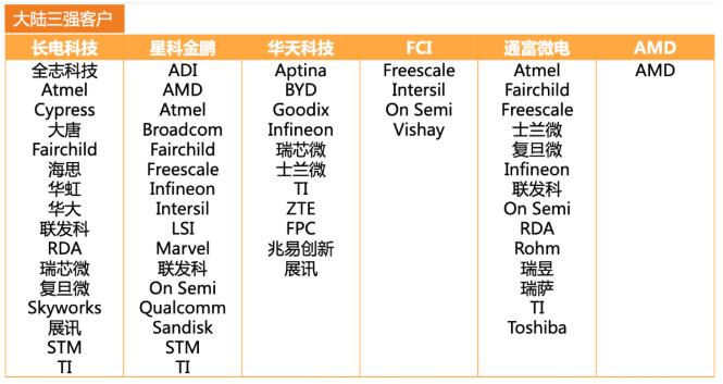 華天科技的核心客戶包括FPC、匯頂、展訊、MPS、PI、SEMTECH、ST等。