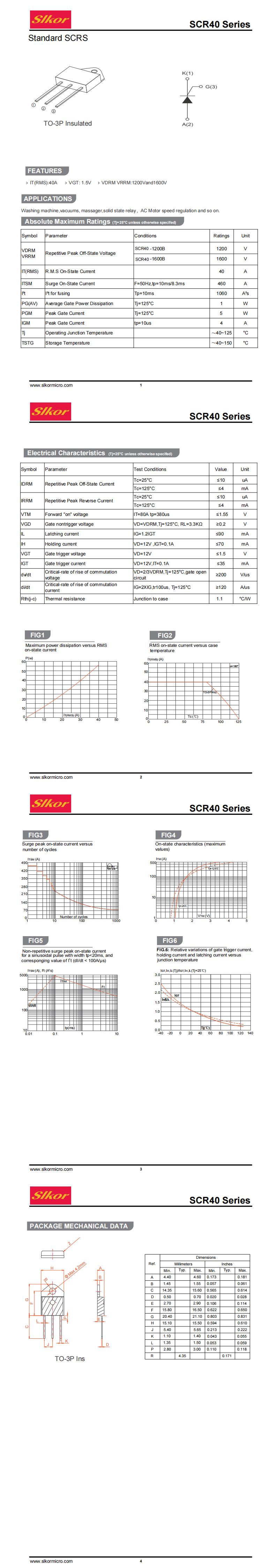 1. 高反向耐壓:SCR40-1200B 具有卓越的1200V[敏感詞]反向耐壓能力,適用于高壓環(huán)境。