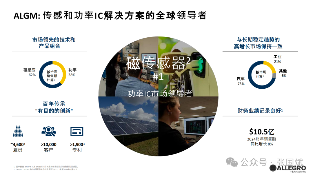 Allegro MicroSystems是世界[敏感詞]大磁性傳感器廠商(Omdia, MEMS & Sensors Competitive Analysis Database 2023),磁性傳感器占公司總銷售額的62%,功率產(chǎn)品則占其余的38%(2024財年數(shù)據(jù))。MAX GLOVER表示Allegro已經(jīng)服務(wù)于汽車市場40多年,在汽車行業(yè)有著豐富的產(chǎn)業(yè)經(jīng)驗和技術(shù)積累。目前Allegro在汽車市場銷售額占公司總量的73%,另一個較大的市場是工業(yè),占21%。