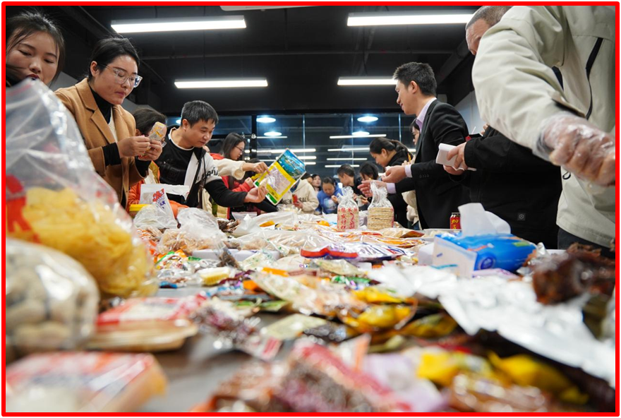 總經(jīng)理宋仕強(qiáng)延續(xù)暖心傳統(tǒng),與前兩屆一樣給每位員工補貼200元,鼓勵大家?guī)砑亦l(xiāng)特產(chǎn)與同事們分享。大家紛紛從家鄉(xiāng)帶來了極具地域特色的美食,讓美食節(jié)豐富多彩。活動開始時,薩科微金航標(biāo)(www.kinghelm.com.cn)會議室的桌面上擺滿了來自各省各地的特產(chǎn),像有川渝地區(qū)的麻花、怪味胡豆、劍門關(guān)豆腐、麻糖,湖南的醬板鴨、小魚仔,江西的酸棗糕、九江茶餅,廣東潮汕的綠豆餅,河源的龍川花生、貓耳朵,梅州的豬腸糕等,每一種美食都散發(fā)著獨特的香味,承載著家鄉(xiāng)的歷史、風(fēng)土人情記憶和鄉(xiāng)愁,光是看著就讓人垂涎欲滴。