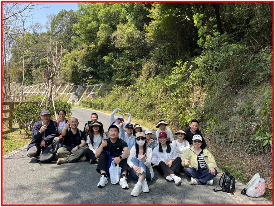 拍完大合照后,我們分成幾支小分隊沿著陽臺山的綠道徐徐前行。綠道兩旁綠意盎然,郁郁蔥蔥的樹木點綴著山坡,新綠的樹葉在微風中搖曳,空氣中彌漫著泥土和草木的清香。這治愈、幽靜的環(huán)境讓小伙伴們瞬間卸下了平日的疲憊,舒服地欣賞著自然的美景,呼吸著清新的空氣,感受著春日那種生機勃勃的氣息。