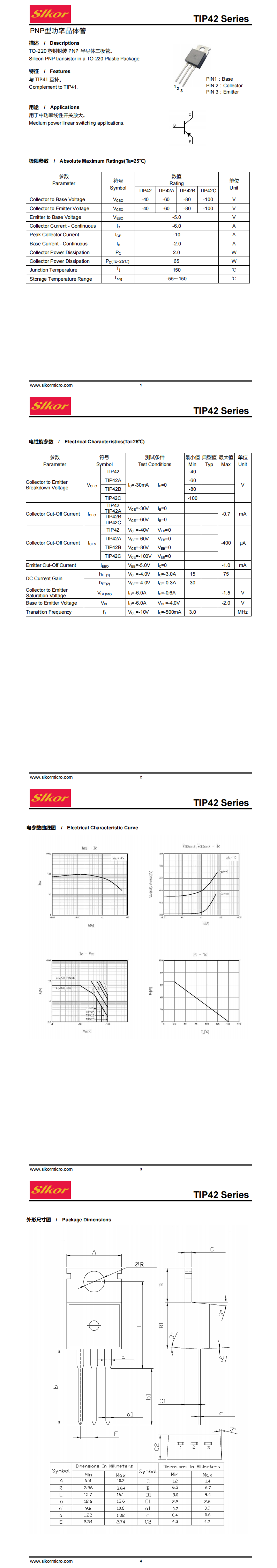 集電極截止電流(Icbo): -0.7mA,表明TIP42C的泄漏電流很小。
